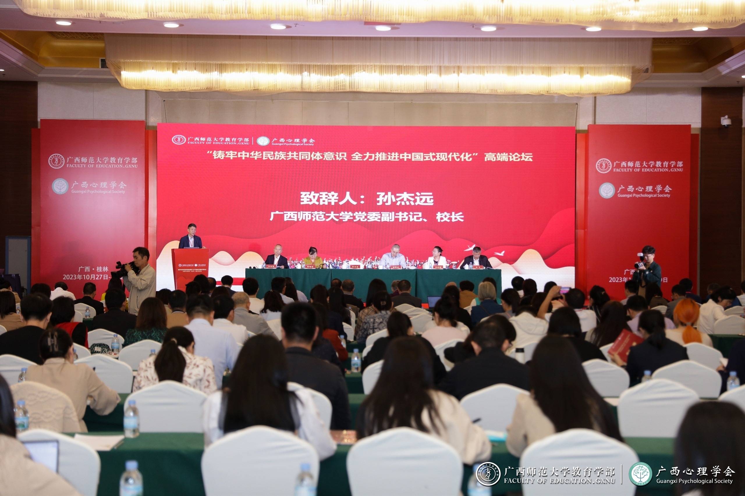 此次论坛是由广西师范大学教育学部、广西心理学会主办,教育部民族教育发展中心铸牢中华民族共同体意识教育与心理重点研究基地、广西壮族自治区铸牢中华民族共同体意识广西师范大学研究基地、广西民族教育发展研究中心、广西师范大学中华民族共同体研究院承办。来自全国的89所高校和科研机构近300位专家及学者出席了论坛。中心博士研究生钟大伟、李雪婷,硕士研究生周瑞茜、王亚馨随队赴桂参会。