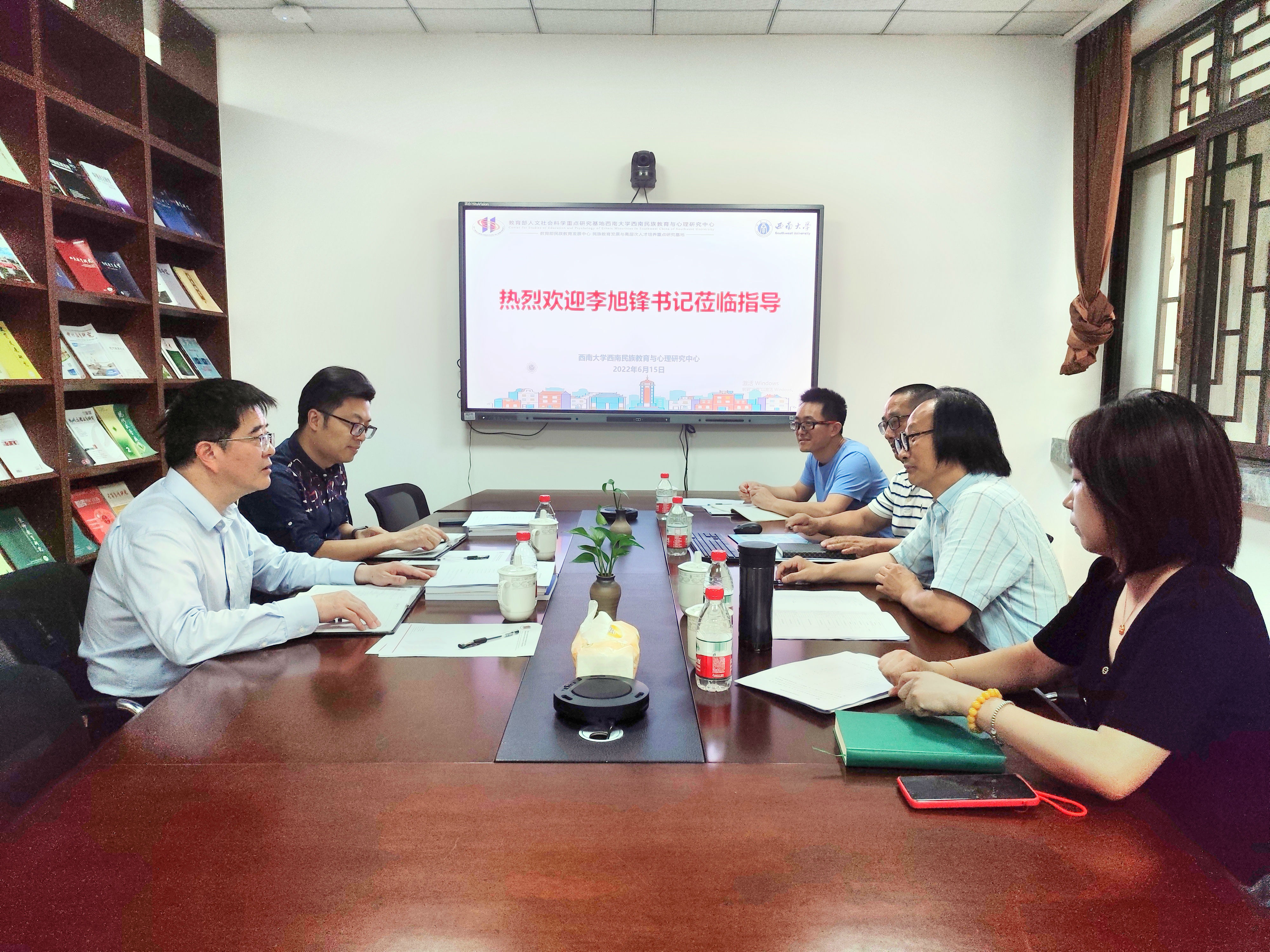 6月15日下午,党委书记李旭锋一行到西南民族教育与心理研究中心调研指导工作,党政办公室有关负责同志陪同调研。中心现有班子成员及办公室人员参加调研座谈。