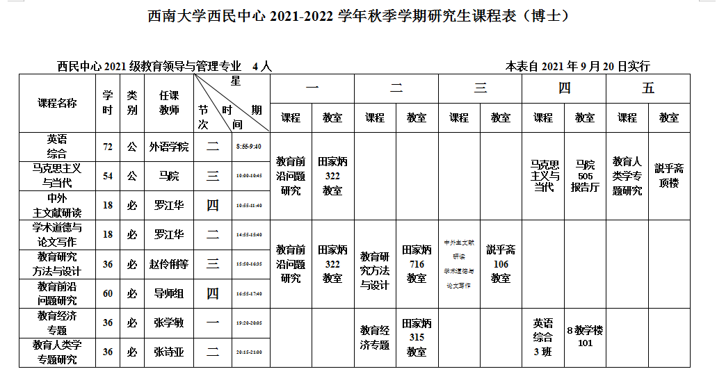 1.《教育人类学专题研究》于9月24日开始正式上课,请2021级博士学生按时参加;