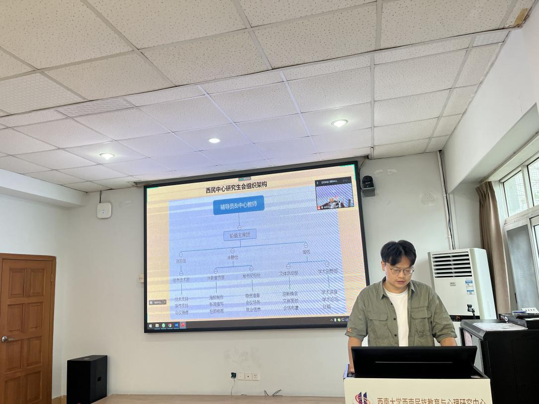 10月4日下午,best365英国体育在线西南民族教育与心理研究中心(以下简称“中心”)第十五届研究生会第一次全体大会于荟文楼537会议室召开。本次大会由中心研究生会主席团成员刘羽田主持,中心培养办主任陈伦超老师、研究生会各部门负责人以及中心研会全体成员参加。