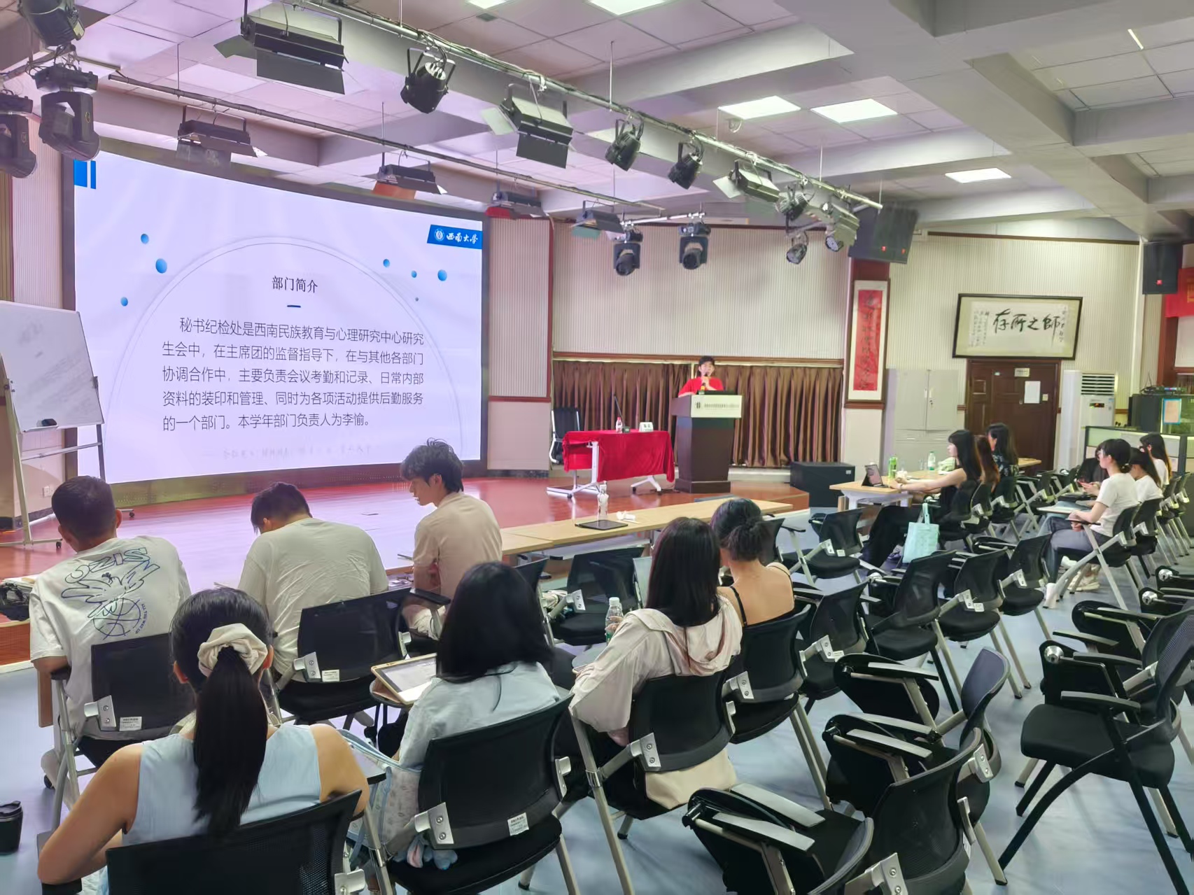 2.各部门负责人进行自我介绍并对本部门所负责的研会工作内容进行详细介绍;