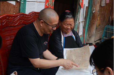 图5蒋立松老师与当地文化名人交流占里的民俗文化