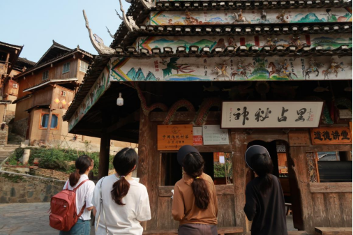 村里有两口泉眼,一口泉眼叫男井,一口叫女井。这两口泉眼的泉水一年四季永不枯竭,而且不管刮风下雨,流出的泉水都是清澈无暇。关于这两口井,当地还有各种寓意美好的故事,都寄托着各族群众对人丁兴旺、身体健康、生活美好的向往。同学们在参观男女井时恰好还碰见了专程前来取井水喝的一行人,经过询问得知他们正是听闻这两口井的故事后慕名而来。小小的水井,已成为占里淳朴民风的缩影和重要的名片。