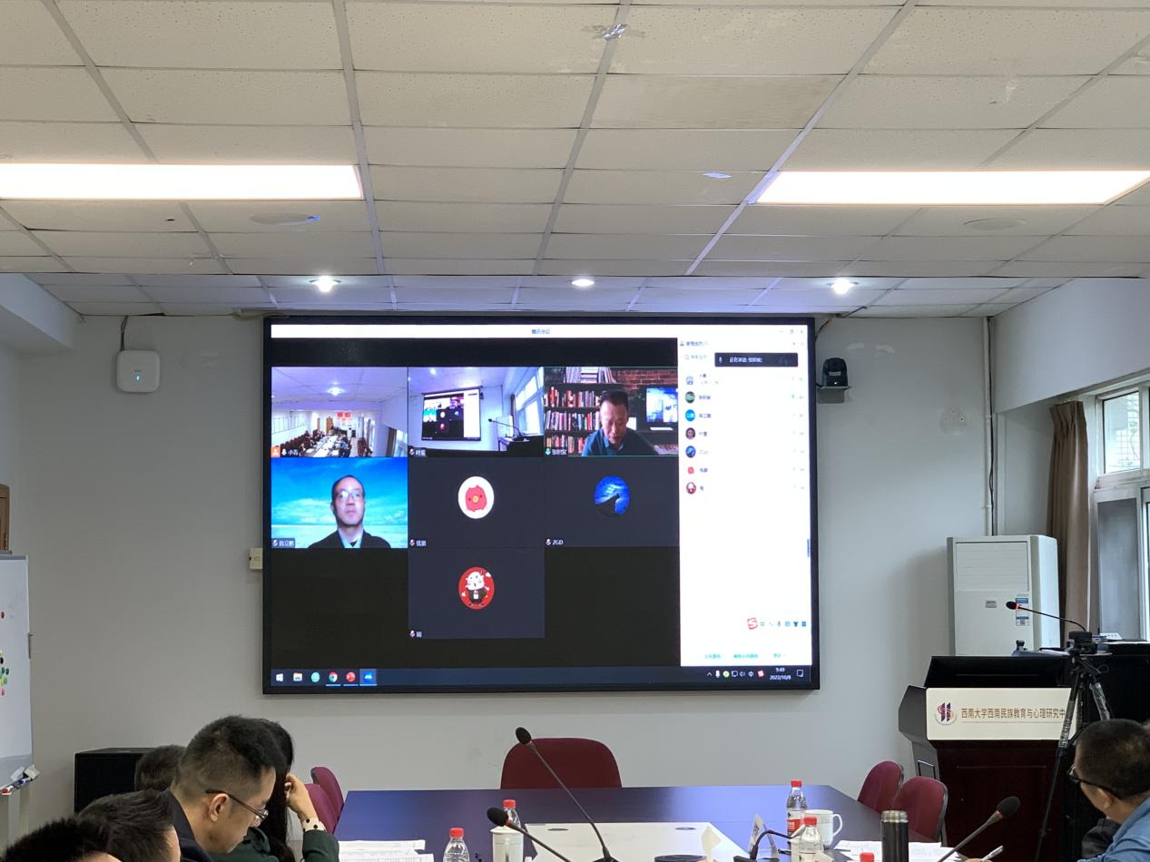为进一步落实best365英国体育在线西南民族教育与心理研究中心(以下简称中心)“十四五”规划,加强中华民族共同体意识教育智能化实验室建设,2022年10月8日上午,中心在荟文楼537会议室举行“中华民族共同体意识教育”专题实验专家论证咨询会。会议由中心副主任、实验室首席专家蒋立松研究员主持,中国人民大学、广西师范大学张积家教授,中国人民大学陈立鹏教授、best365英国体育在线邱江教授、罗生全教授、赵玉芳教授、张学敏教授、曾现江教授、位东涛副教授、陈群林副教授、张健副教授和部分博士生共计14人参加此次会议。