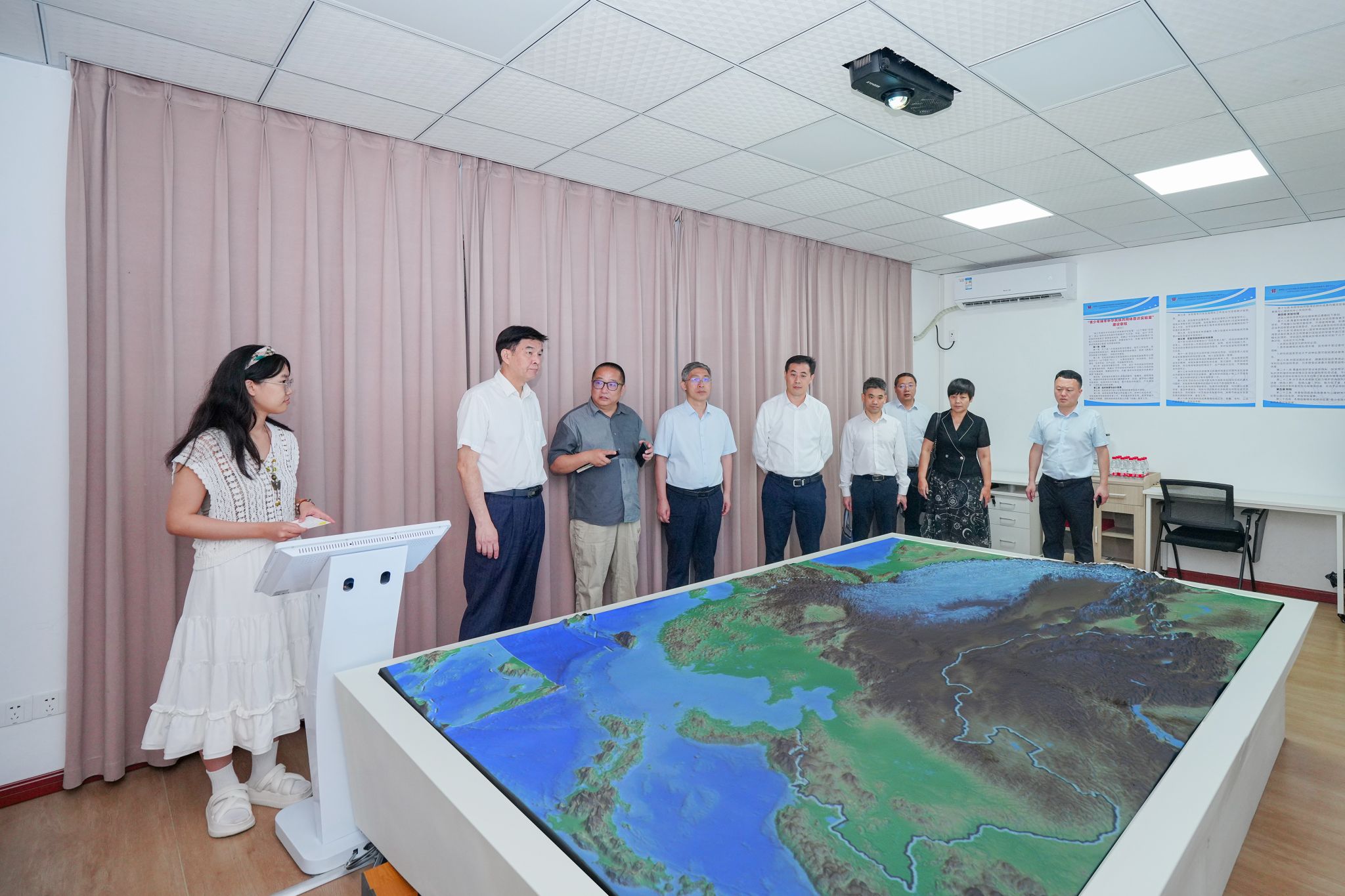 考察中,蒋立松研究员和实验室团队成员结合数字沙盘演示系统,从理论框架、建设思路、网页建设、沙盘演示和扎根学校等方面汇报了实验室项目进展,并演示了沙盘可视化交互平台的特色功能。