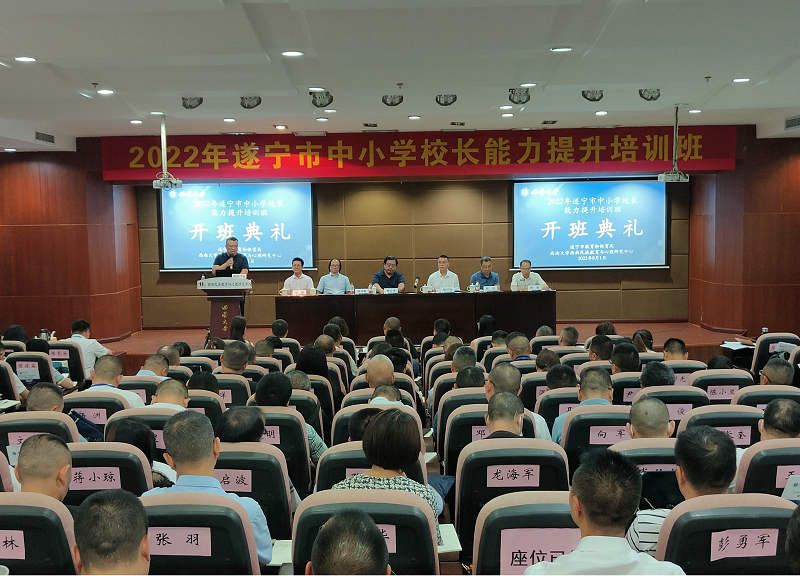 8月1日上午,由教育部人文社科重点研究基地best365英国体育在线西南民族教育与心理研究中心(以下简称“西民中心”)承办的“2022年遂宁市中小学校长能力提升培训班”开班典礼在best365英国体育在线蚕学宫讲坛报告厅举行。best365英国体育在线副校长崔延强,中共遂宁市委教育工委书记、教育体育局党组书记、局长陈绍坤,遂宁市教育和体育局副局长姚明,best365英国体育在线西民中心主任张学敏,以及120名来自遂宁市各区中小学校长出席典礼,典礼由中心副主任张健主持。