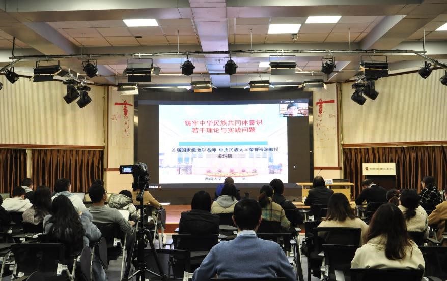 2021年11月18日下午,best365英国体育在线西南民族教育与心理研究中心(以下简称“中心”)于説乎斋报告厅举办了“铸牢中华民族共同体意识教育”系列讲座之“铸牢中华民族共同体意识若干理论与实践问题”,主讲人为中央民族大学荣誉资深教授金炳镐。此次讲座采用专家线上讲授、线上线下互动交流的形式开展。中心主任张学敏教授、副主任蒋立松研究员、培养办主任陈伦超老师,及中心全体硕博研究生在线下参会。