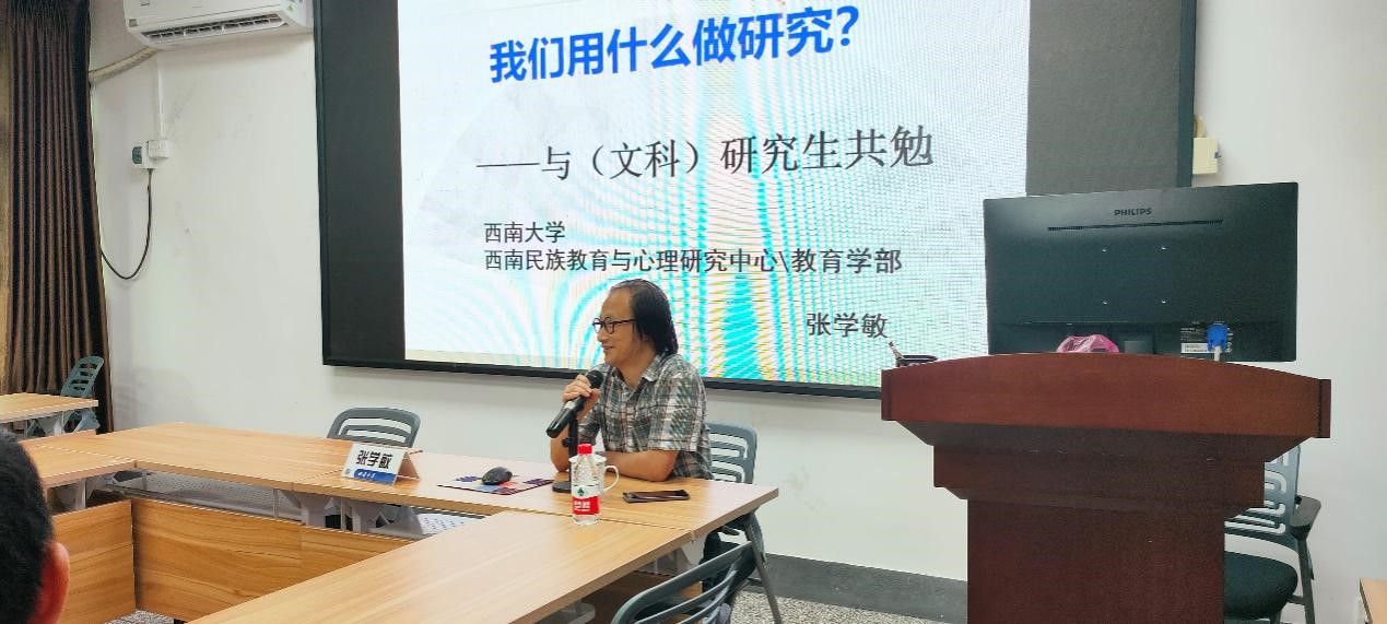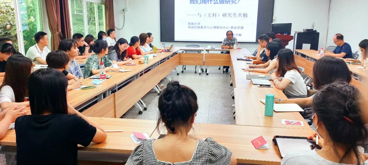 9月14日下午,best365英国体育在线西南民族教育与心理研究中心(以下简称“中心”)主任张学敏教授于説乎斋106教室为中心2021级硕博新生带来入学教育专题讲座“我们用什么做研究——与(文科)研究生共勉”,引导研究生们要做好有识之士、“有耻”之徒、有情之人。