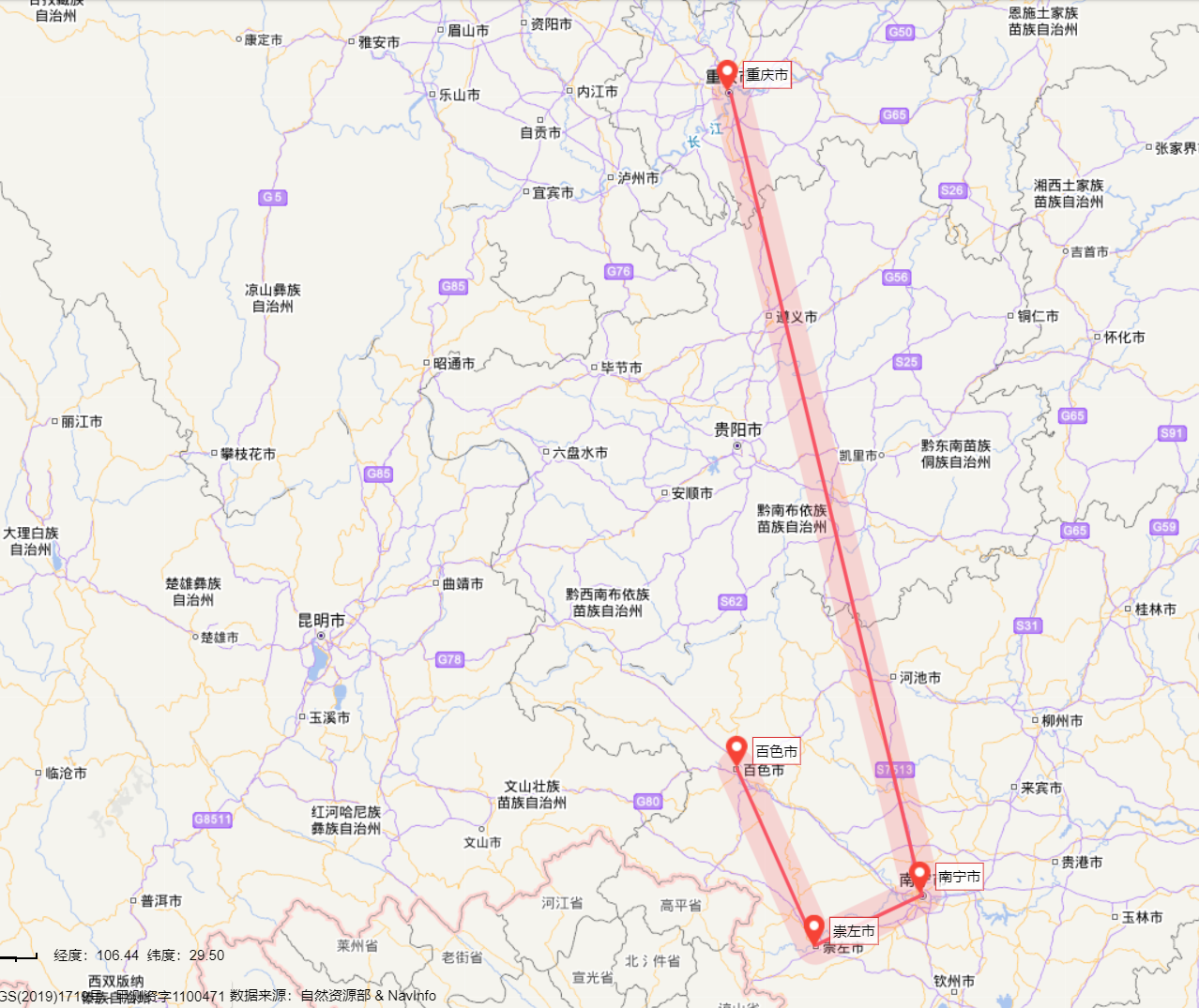 图1 调研组行程图