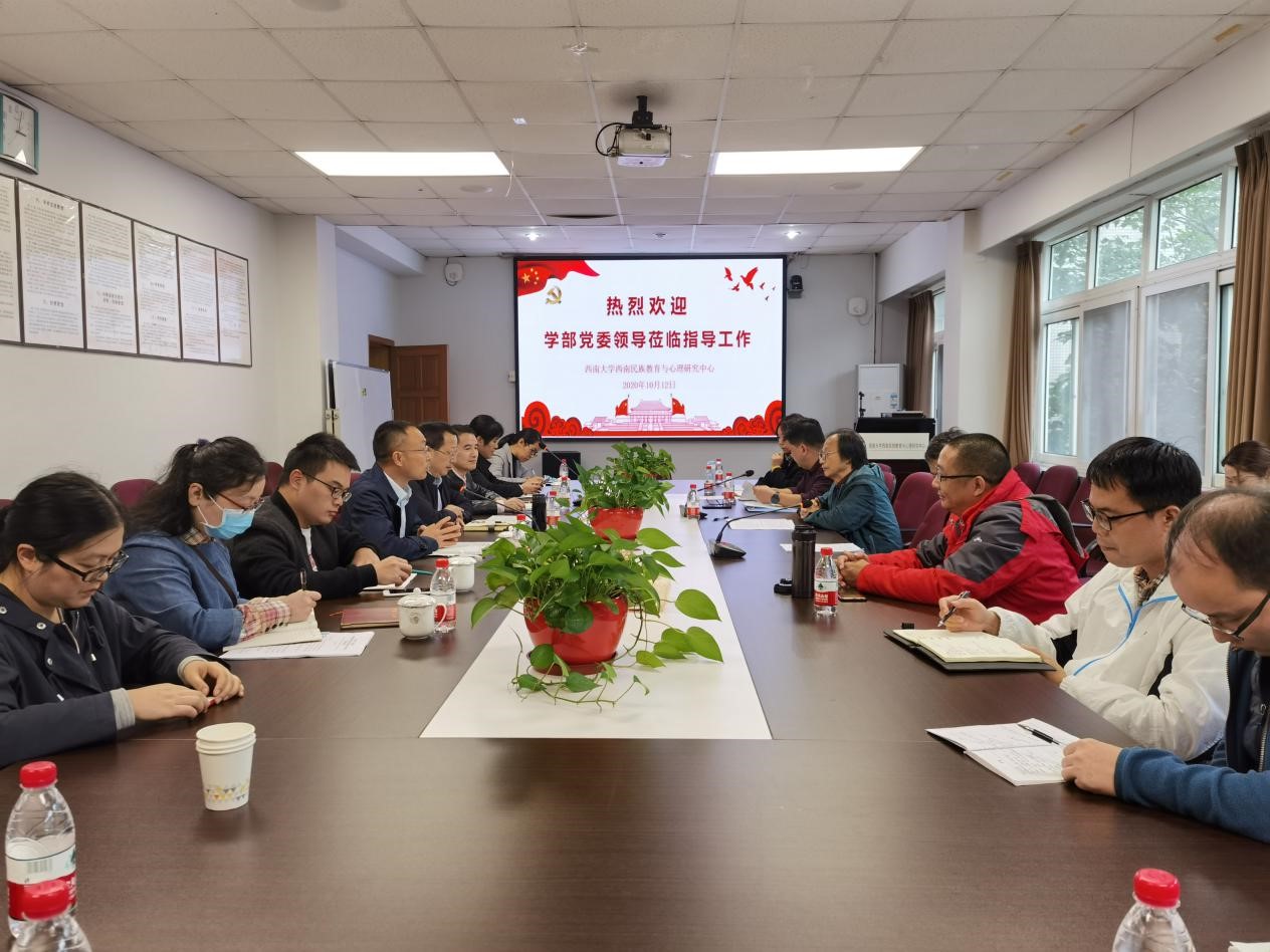 10月12日下午,教育学部党委书记王牧华教授、部长朱德全教授、副书记(纪委书记)卓玉兵带领学部办公室主任胡琴老师、组织员李佳老师等莅临西南民族教育与心理研究中心(以下简称“中心”)537会议室进行调研。中心及中国乡村建设学院(下称“乡建院”)全体老师参加会议,会议由卓书记主持。