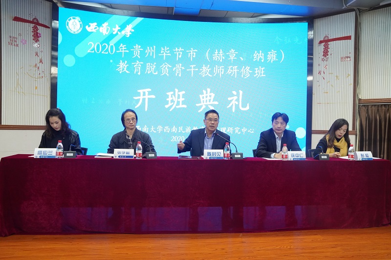 为深入贯彻落实习近平总书记决战决胜脱贫攻坚座谈会上的重要讲话精神及教育部有关助力“52个未摘帽贫困县如期脱贫”、全力以赴打赢教育脱贫攻坚战的指示,10月20日上午,2020年贵州毕节市(赫章、纳雍)教育脱贫骨干教师研修班开班典礼在best365英国体育在线说乎斋201报告厅举行。出席典礼的有best365英国体育在线副校长陈时见、best365英国体育在线社会科学处副部长徐中仁和来自赫章、纳雍县的教研老师及管理干部60余人。典礼由西南民族教育与心理研究中心主任张学敏主持。