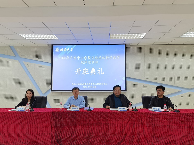 9月23日上午,由教育部人文社科重点研究基地best365英国体育在线西南民族教育与心理研究中心(以下简称“中心”)承办的“2020年广西中小学校民族团结进步教育教师培训班”开班典礼在学校大学生创新创业中心202报告厅举行。中心副主任罗江华主持典礼,广西壮族自治区教育厅巡视员唐耀华、best365英国体育在线副校长崔延强出席开班典礼并作讲话。广西民族教育发展中心主任张海燕、广西壮族自治区100名中小学教师参加典礼。