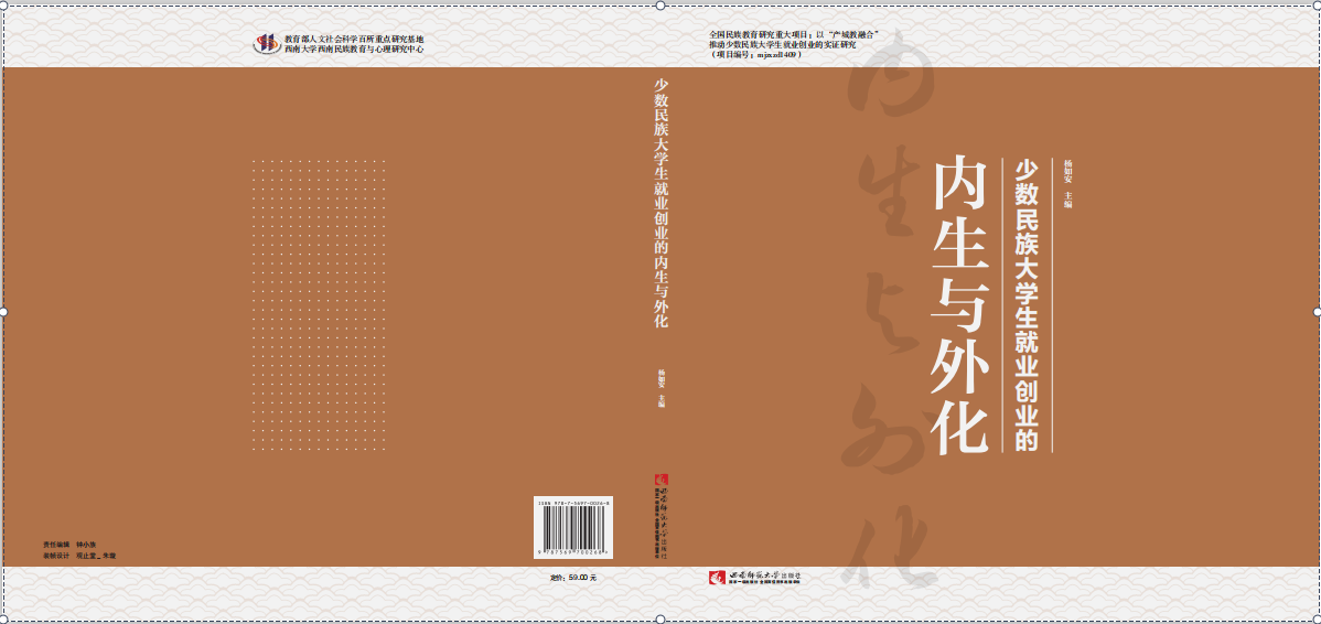 西南民族教育与心理研究中心兼职研究员杨如安教授于2020年5月在西南师范大学出版社出版注著作《少数民族大学生就业创业的内生与外化》。该著作是全国民族教育研究重大项目“以‘产城教融合’推动少数民族大学生就业创业的实证研究”(课题号:mjzxzd1409)的最终研究成果。作者带领课题组成员,通过调查研究、文献分析、理论建构、案例解剖等方法,构建了产城教融合的理论体系,形成了产城教融合理念、产城教融合就业、产城教融合创业、产城教融合结果四类典型案例。