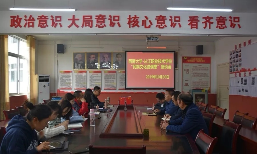 10月30日上午,调查组在从江县民族宗教事务局顾泽武的陪同下赴县职业技术学校进行座谈与调研。座谈会上,周光尧校长、赵振全副校长分别介绍了本校民族文化进校园实施情况及非物质文化遗产—侗族大歌、民族文化传授方式、取得成果等。该校民族文化传承人石明香老师就近几年学校“民族文化进课堂”实施过程中存在的困难和取得的教学成效与调查组进行交流探讨。