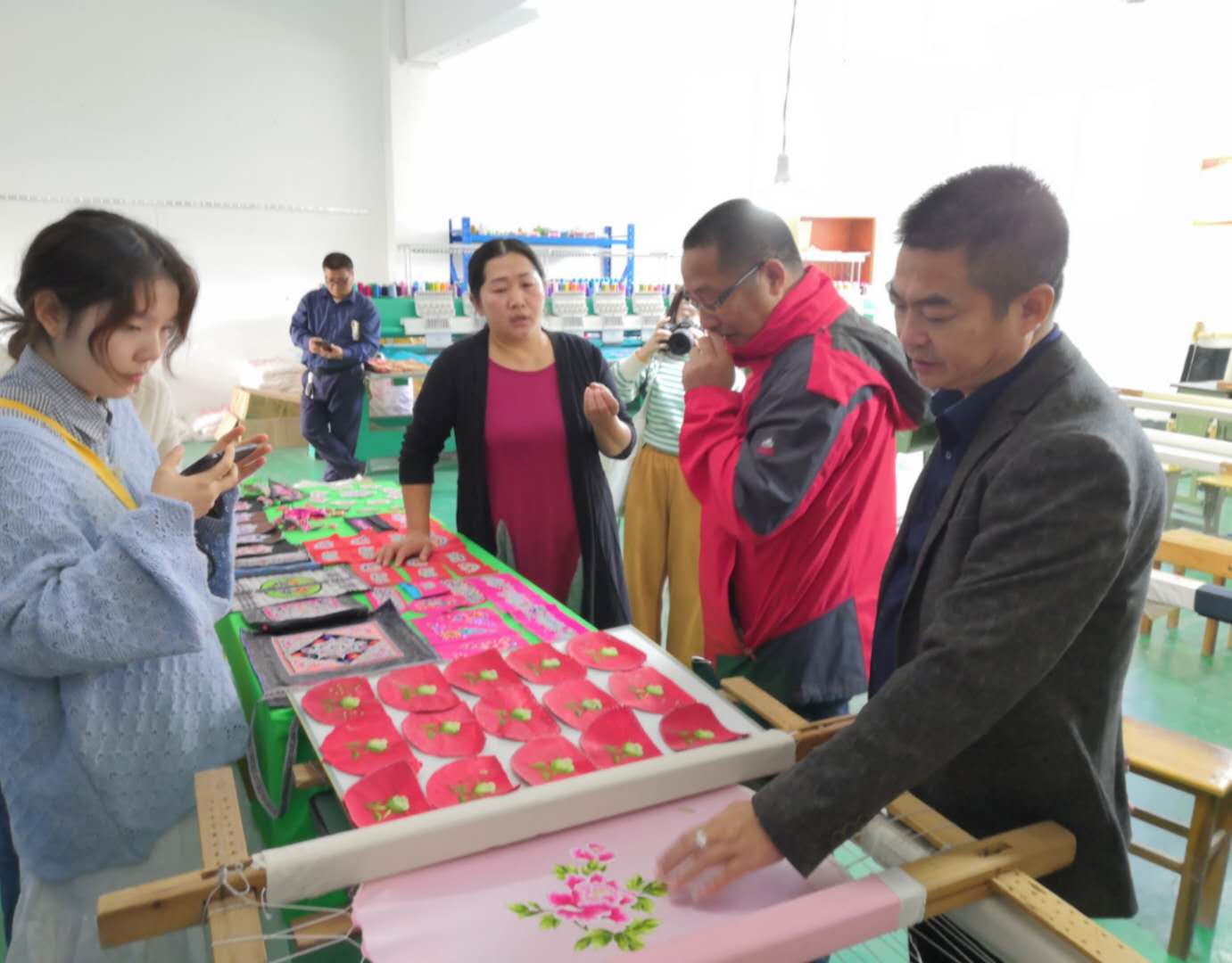图八调查组在从江县职业技术学校考察民族刺绣