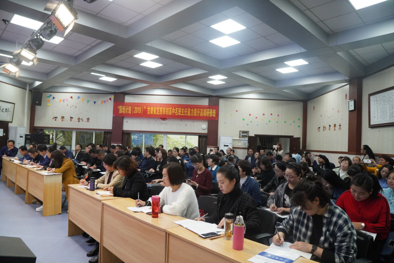 典礼伊始,张学敏教授对甘肃定西市的各位班主任表示热烈欢迎。他指出“国培计划”是落实全国教育工作会议和教育规划纲要精神的教育发展重大项目,是建设高素质专业化教师队伍的一项重大举措,旨在示范引领、促进改革,希望学员能多学多思,学以致用,高质量地完成本次研修活动。作为学员代表,甘肃省临洮中学政教主任赵海红老师代表全体培训学员对中心的精心安排表示真挚的感谢,并承诺一定认真对待培训、潜心研修学习、充分汲取理论知识、回去后切实融入自身实践。