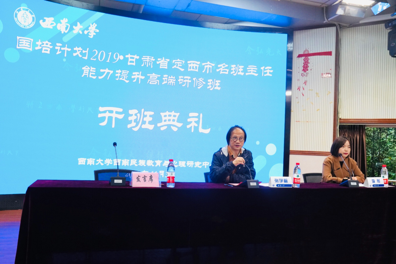 11月3日上午,由西南民族教育与心理研究中心(以下简称“中心”)承办的国培2019—甘肃省定西市名班主任能力提升高端研修项目开班典礼在best365英国体育在线説乎斋报告厅顺利举行。中心综合办主任李彤主持典礼,中心主任张学敏教授出席典礼并作讲话。来自甘肃省定西市各区、各县和各乡镇的幼儿园、小学、初高中等100名班主任参加此次培训学习,培训将为期十天。