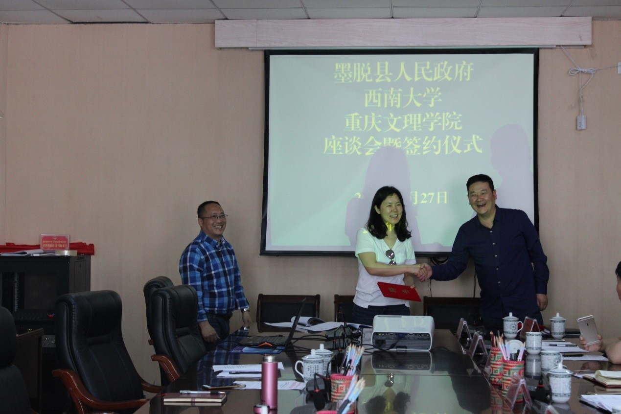 吴晓蓉教授、贺能坤教授受聘为西藏自治区墨脱县教育发展专家,高功强为其颁发了证书。