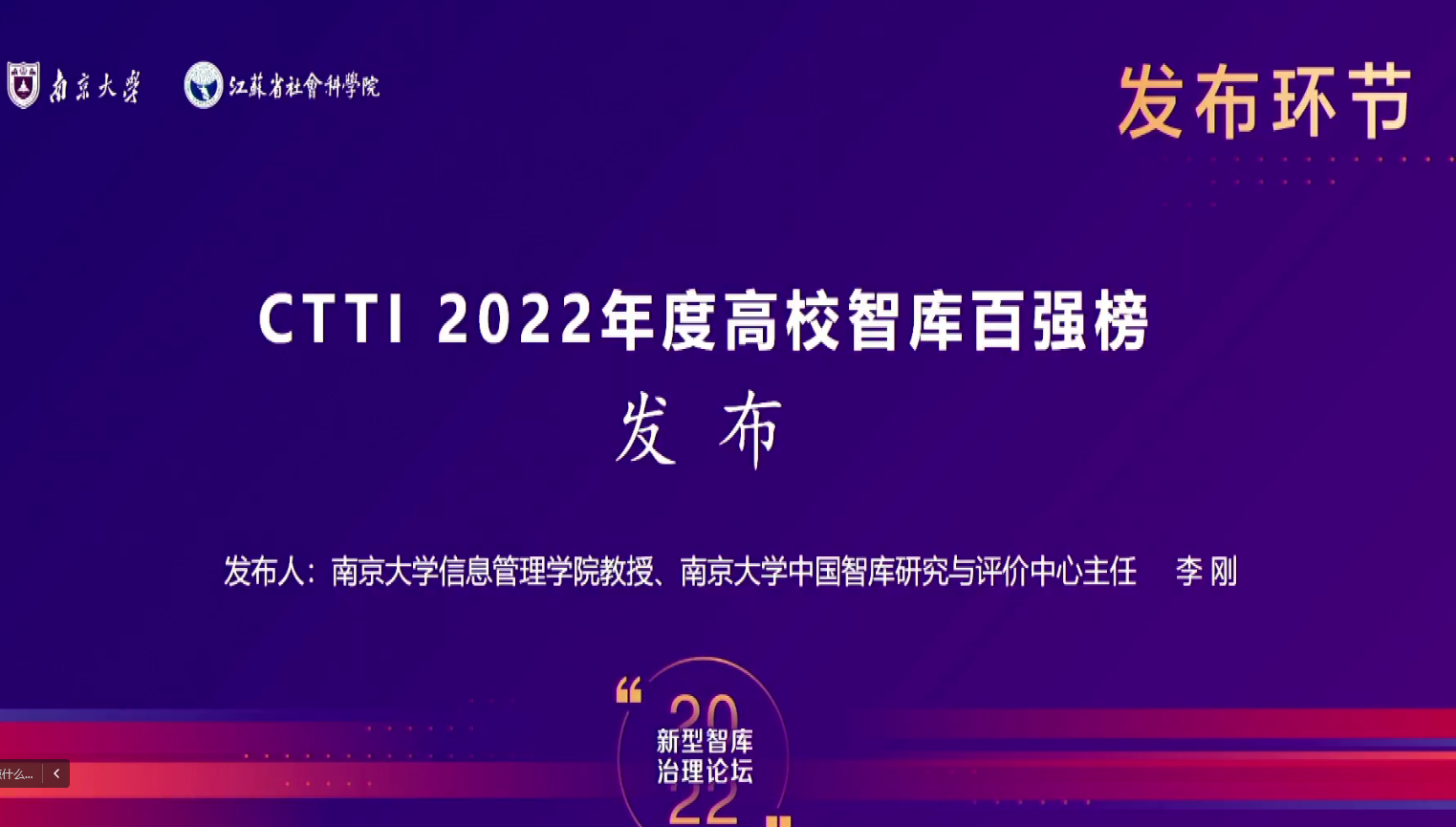 2022年12月17日,江苏省社会科学院与南京大学联合主办、南京大学中国智库研究与评价中心承办的“2022新型智库治理论坛”在南京举行。