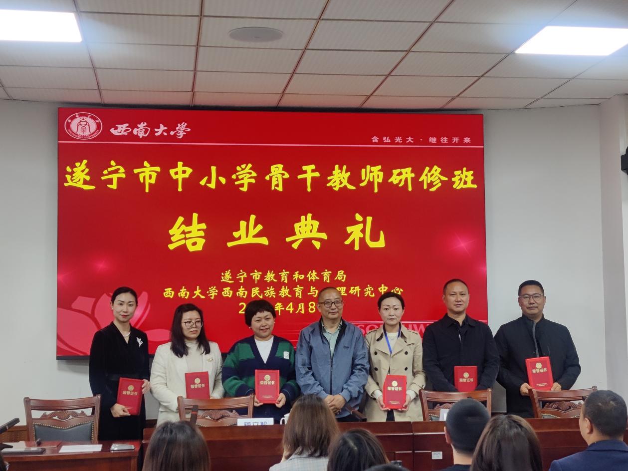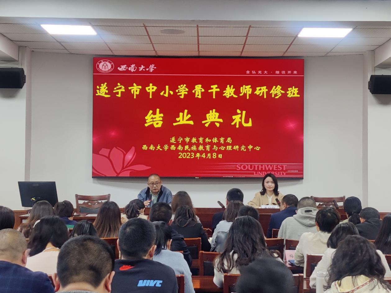 4月8日下午,“遂宁市中小学骨干教师研修班”结业典礼在best365英国体育在线兰苑宾馆8101报告厅举行,来自四川省遂宁市的90名学员完成培训内容,成绩合格,准予结业。中心副主任蒋立松教授出席典礼为学员颁发结业证书并讲话,中心综合办王丹丹老师主持。