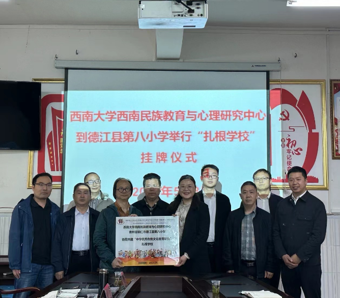 5月3日,中心调研组全面考察了德江县第八小学的发展概况、文化建设及学生学习等情况。经双方研究决定,德江县第八小学成为中心协同共建“扎根学校”的协议校,并举行签约暨授牌仪式。此后,共建双方就教学教研、科研合作、人才培养等工作进行了深入交流,并就推动高校科研机构与民族地区学校合作开展学术研究、指导培养高素质人才和为提供学生实践实习平台等问题达成普遍共识。