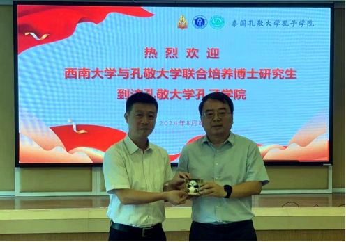 图1 中国博士生身着中国传统服饰参加孔敬大学教育学院教育管理专业研究生拜师典礼