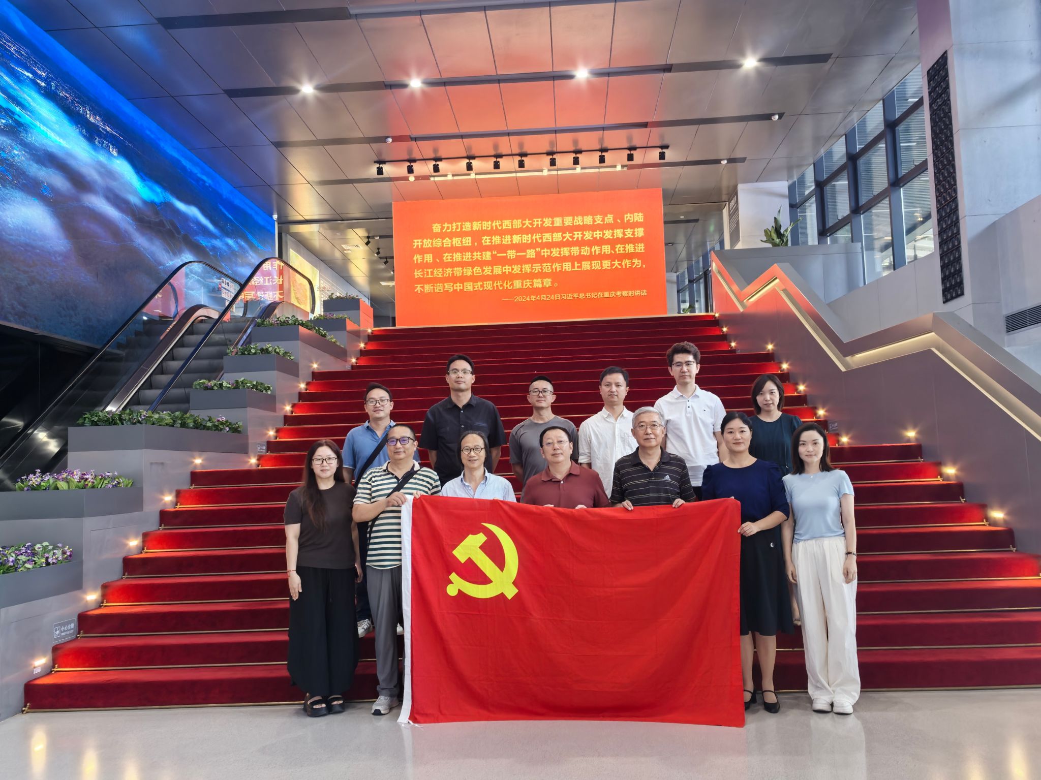 为学习贯彻习近平总书记视察重庆重要讲话和在新时代推动西部大开发座谈会上的讲话精神,深入贯彻中央八项规定精神,深刻理解重庆的发展的历史基础和历史机遇,围绕“铸牢中华民族共同体意识”的工作主线扎实推进党建与事业发展融合,经请示上级党委同意,中共best365英国体育在线教育学部委员会西南民族教育与心理研究中心(以下简称“中心”)教师支部全体党员、中心硕博士生支部书记及民主党派人士、教职工群众(以下简称“中心一行”),于2025年6月17日赴重庆市规划展览馆(以下简称“展览馆”)开展党组织生活和实践研学活动。中共best365英国体育在线党委委员、教育学部部长、学部党委副书记朱德全同志莅临指导。