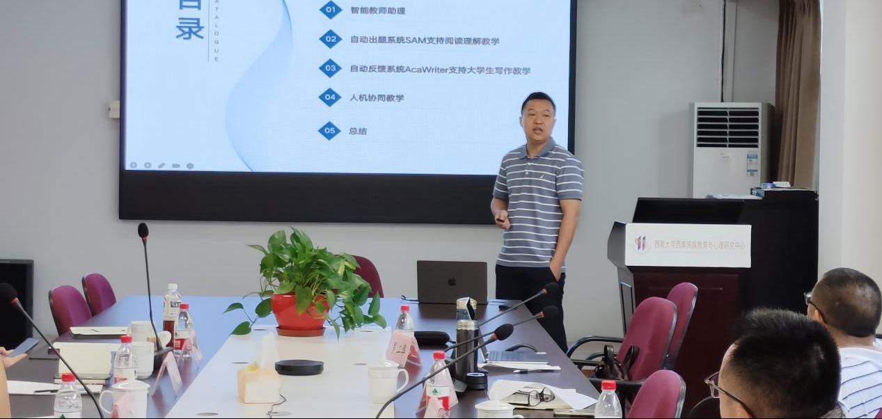 刘明老师分享了智能问答系统的相关研究。他重点对当前教师智能代理技术做了分析,内容涉及系统的大规模处理能力、信息识别能力、交互反馈能力等方面;并结合AI代理、AI助手、AI 教师、AI伙伴(举例auto tutor)和个性化学术写作反馈等相关研究,讲述了实验室机器人项目开发的思路。