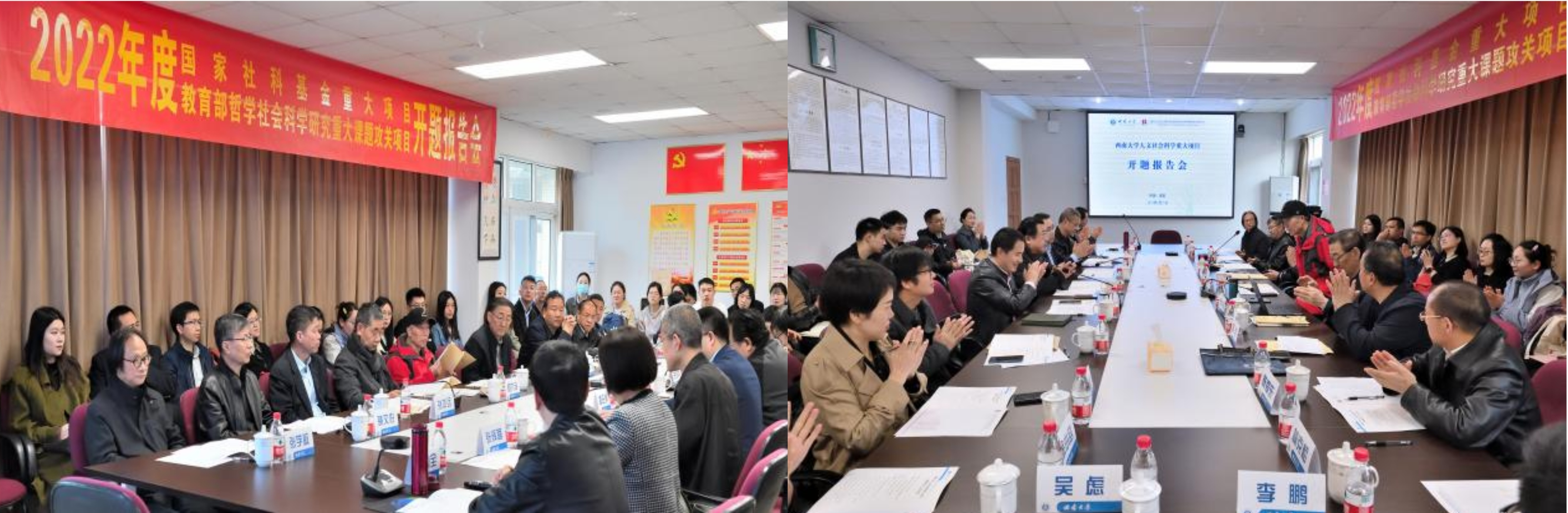2023年3月15日,best365英国体育在线人文社会科学重大项目开题报告会在西南民族教育与心理研究中心(以下简称中心)荟文楼537会议室举行——2022年度国家社科基金重大项目“西部农村和民族地区人力资本培育的方式和路径选择研究”(以下简称重大项目)和教育部哲学社会科学研究重大课题攻关项目“新时代教育评价改革的实现路径研究”(以下简称攻关项目)正式开题。出席报告会的领导和专家有重庆市社会科学界联合会规划评奖办唐旺虎主任和周顺文一级调研员、best365英国体育在线崔延强副校长、best365英国体育在线社会科学处王牧华处长和吕刚武同志,华中师范大学范先佐教授、华东师范大学杨九诠教授、中央民族大学苏德毕力格教授、陕西师范大学陈鹏教授和广西师范大学孙杰远教授。会议开幕式由王牧华教授主持,开题报告会由范先佐教授主持。教育学部朱德全教授和中心张学敏教授,分别作为攻关项目和重大项目首席专家,代表课题组做开题报告。