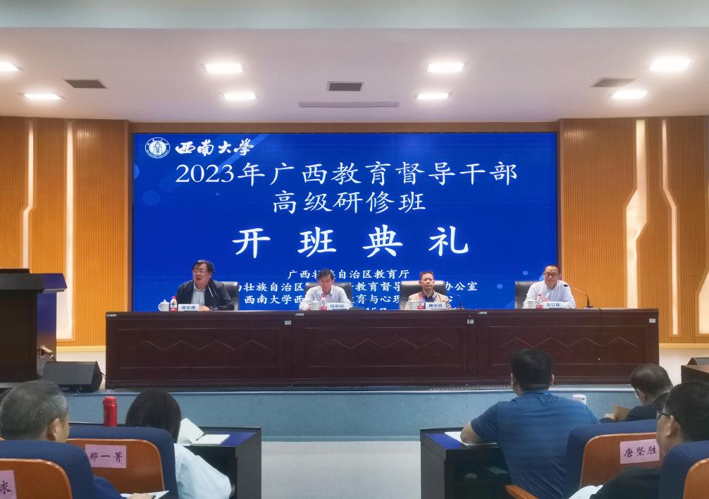 5月15日上午,由教育部人文社科重点研究基地best365英国体育在线西南民族教育与心理研究中心(以下简称“西民中心”)承办的“2023年广西教育督导干部高级研修班”开班典礼在best365英国体育在线31教309报告厅举行。教育部督导局向明灿副局长、广西壮族自治区教育厅黄华吉总督学、best365英国体育在线崔延强副校长应邀出席,西民中心副主任蒋立松研究员主持典礼。150余名来自广西壮族自治区的教育督导干部参加典礼仪式。
