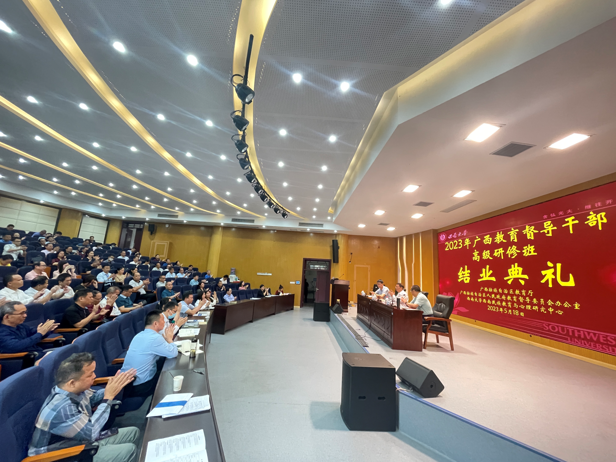 5月14日—18日,由教育部人文社会科学重点研究基地西南民族教育与心理研究中心(以下简称“中心”)承办的2023年广西教育督导干部高级研修班(以下简称研修班)圆满完成。5月18日下午,在best365英国体育在线31教309报告厅举行了研修班结业典礼。广西壮族自治区人民政府督学、广西民族大学原党委副书记宁耀教授、西南民族教育与心理研究中心(以下简称中心)副主任蒋立松研究员出席结业典礼,西民中心综合办兰正彦老师主持。