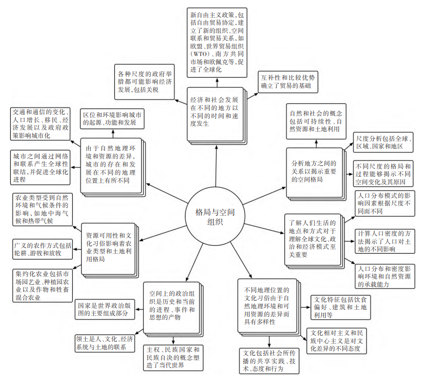 图1 美国AP人文地理考试3层次知识结构体系(节选)[13]