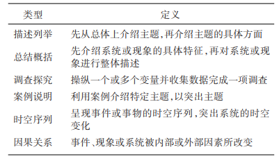 第一,利用叙事结构组织情境材料。作为一类为学科抽象概念构建现实意义的特殊文本,情境材料的文字描述必然蕴含潜在叙事结构,Fulkerson等将其划分为描述列举、总结概括、调查探究、案例说明、时空序列、因果关系6类(表3)[23]。以综合思维的评价为例,命题人员需要利用“案例说明”“时空序列”“因果关系”等叙事结构撰写情境材料,说明某区域地理要素的典型特征、时空分布、相互作用,为引发考生在地方综合、时空综合、要素综合上的能力表现提供有意义的背景。合理使用这些叙事结构组织情境材料,既可以帮助命题人员构思观点、收集材料,也可以优化情境材料的叙述方式,使其与考查目的相一致,克服泛化问题。