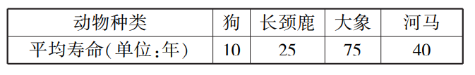 表1 四种动物的平均寿命