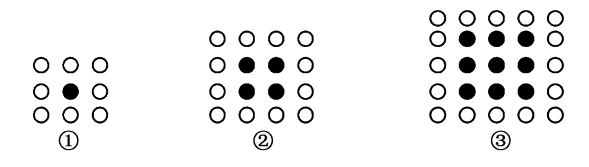(b)第六幅图中有几个黑点?