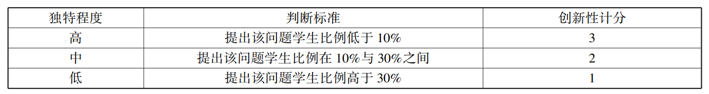 表3问题提出创新性的判断与计分