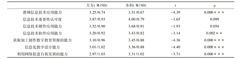3.本科学历教师信息技术应用能力高于大专学历教师