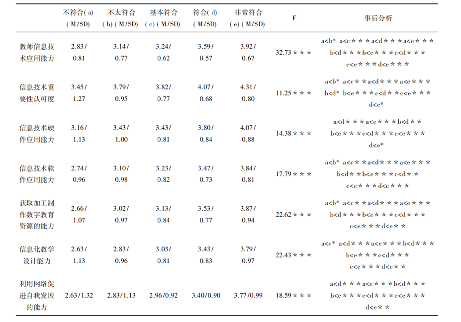 表7 教师信息技术应用能力在学校信息化设备配置水平上的差异