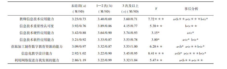 2.教师信息技术应用能力随参加培训次数的增加而上升