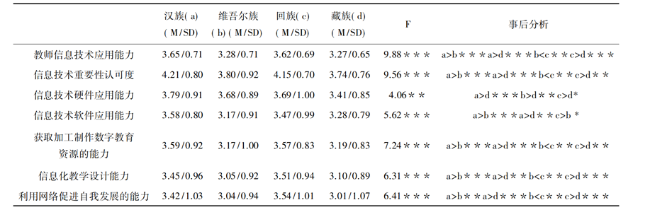 表6 汉族、维吾尔族、回族、藏族教师信息技术应用能力的差异