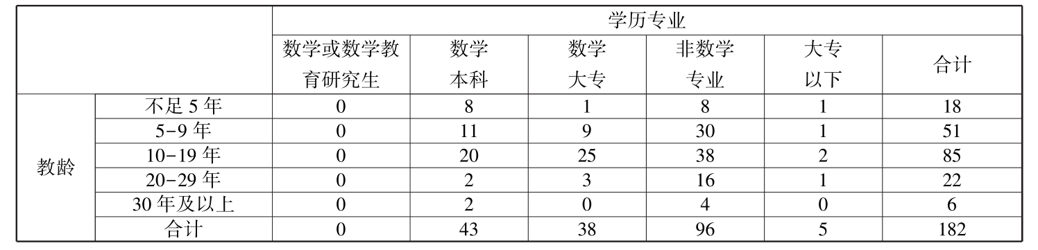 表2 调查问卷中N州受访教师的学历专业与教龄