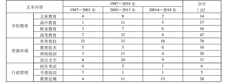 表1 1987—2018年《工作要点》民族教育文本内容的词频统计