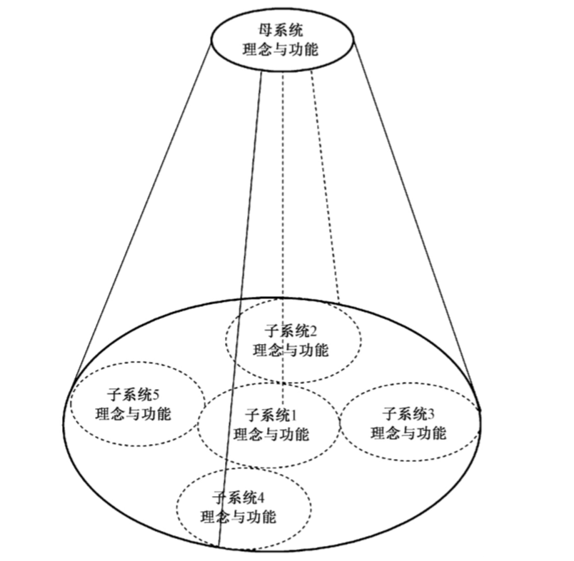 毛泽东在《为人民服务》一文中指出:“我们都是来自五湖四海,为了一个共同的革命的目标,走到一起来了。”[1]我们也完全可以形象比喻说,上述五个子系统是中国共产党所领导的“革命队伍”,“是彻底地为人民的利益工作的”[1],都为“办好人民满意的教育”这样“一个共同的革命的目标,走到一起来了”,相互支持,共同体现母系统的理念,实现母系统的功能。其间关系如图2所示。