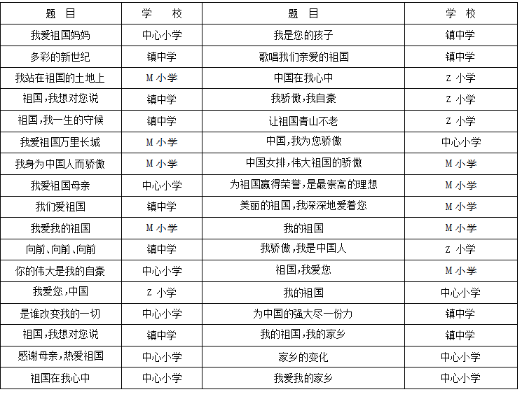 表3 2009年X镇“祖国在我心中”主题作文竞赛一等奖作文一览表