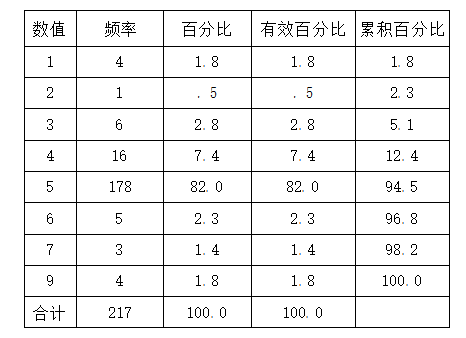 从表2中可以看出,217名被试中,有178名选择5,占总样本数的82.0%。被试得分均值为4.9078,非常接近中位数5。调查结果与表1的结果相吻合,再次说明彝族阿细中学生具有很强的中华民族意识和民族意识。