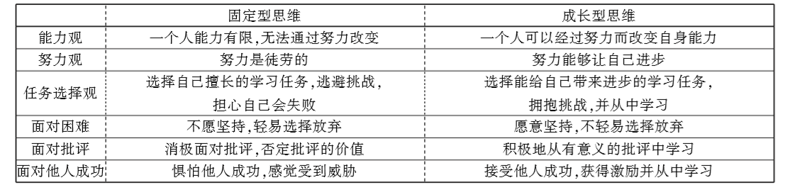 (一)成长型思维与固定型思维的内涵