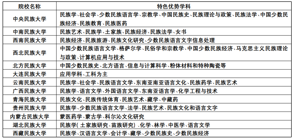 随着新时代教育改革与发展战略的确立,调整优化高校布局和学科结构,实行学科专业动态调整,已成为我国高校“双一流”建设的重要推动机制。对于民族院校来说,推动特色优势学科建设,无疑是落实“双一流”建设重大战略决策的具体呈现形式。事实上,自2015年起,随着《国务院关于统筹推进世界一流大学和一流学科建设总体方案》(国发〔2015〕64号)(以下简称《总体方案》)、《统筹推进世界一流大学和一流学科建设实施办法(暂行)》(以下简称《实施办法》)以及《国家教育事业发展“十三五”规划》等文件的出台,从总体上提出了统筹推动区域内特色优势学科的建设思路,打开了如何形成高等学校科学定位、特色发展的局面。这从政策上为民族院校特色优势学科提供了建设依据,指明了发展方向。在当前双一流建设背景下,民族院校特色优势学科定位的合理确定,显然是迈向世界一流大学和一流学科行列的首要条件与基础。研究如何遵循国家政策所提出的战略要求,合理定位定标特色优势学科,推进民族院校双一流建设进程,对新时代民族院校的整体发展和学科竞争力提升具有十分重要的战略意义。