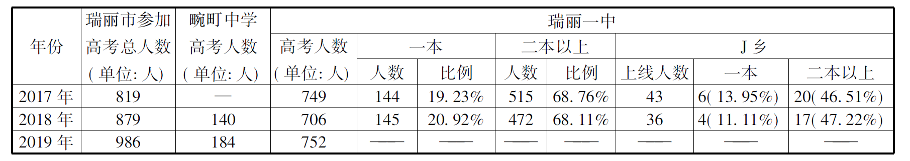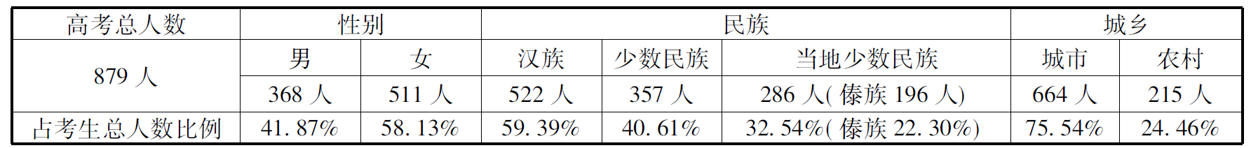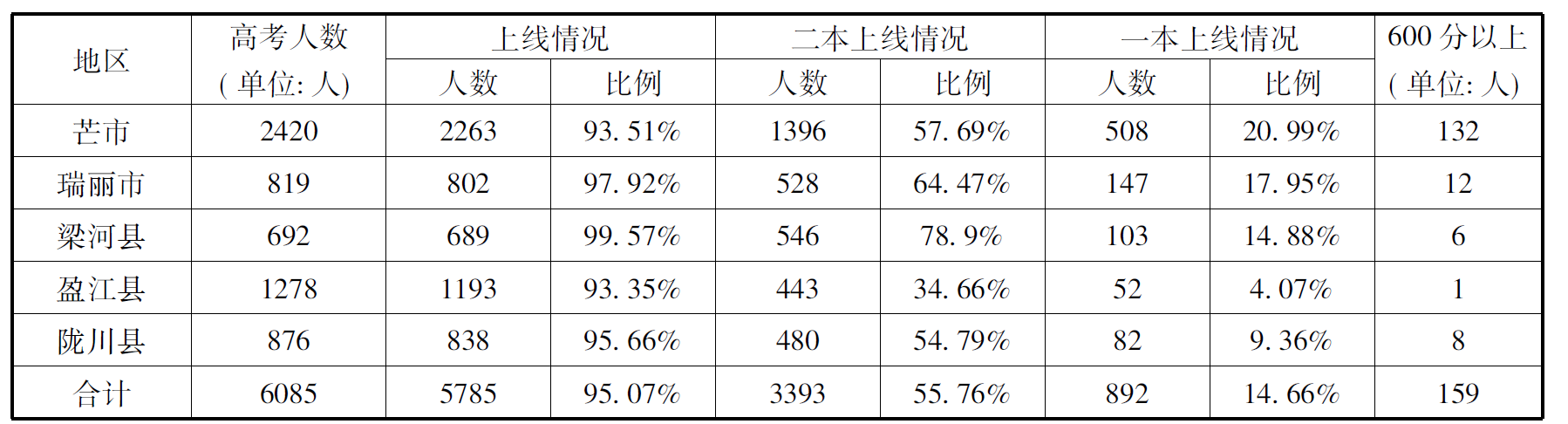 ③数据来源: 云南省德宏州民族第一中学统计材料。