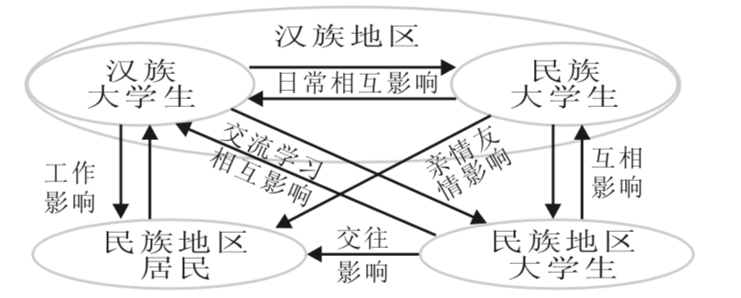 图1大学生中华民族共同体意识“循环接触影响”模式构思图