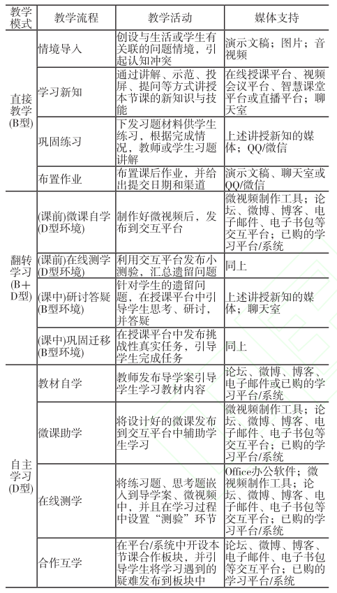 通过上述策略,学校教室转移后形成三种学习环境:B型、B+D型、D型。疫情期间,学校或教师可以分别在对应的环境中开展直接教学、自主学习、翻转学习。此三种教学模式,学校、教师拥有丰富的实践经验,可以快速获得成效。